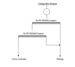 Прежде всего, Магнитный сепаратор с мокрым барабаном SLon отделяет сильные магнезиальные составляющие хвостов, что действует как предварительная обработка. Эффективное удаление черных металлов не только снижает трудоемкость переработки руды, но и максимально повышает чистоту конечного переработанного продукта. Далее перерабатываемая металлическая смесь проходит через модуль разделения металлов, состоящий из двух Мокрые магнитные сепараторы высокой интенсивности SLon (WHIMS). В этом процессе из-за липкой пульпы хвостов трудно извлекать мелкие металлы, что представляет собой настоящую проблему для нашего оборудования.